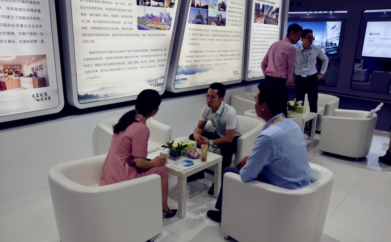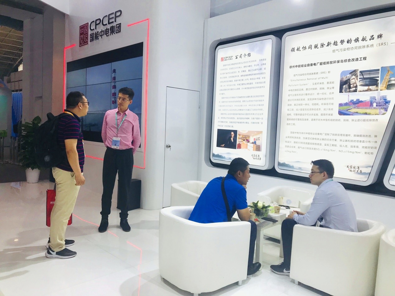 國能中電作為節(jié)能環(huán)保行業(yè)的領軍企業(yè),多年來致力于工業(yè)煙氣治理、超凈火力發(fā)電、生物質(zhì)能源利用、綠色金融服務和環(huán)保新材料研發(fā)等領域。在此次展會中,國能中電集中、全面、生動地展示了公司煙氣污染物協(xié)同脫除系統(tǒng)(SRS)—環(huán)保島、炭基催化劑干法煙氣多污染物一體化脫除技術、余熱閃蒸自結晶“3C-MED”脫硫廢水零排放技術、激光熔覆技術、環(huán)保浸金劑技術等多項優(yōu)勢核心技術,以及環(huán)保裝置第三方運維、環(huán)保核心設備生產(chǎn)等專業(yè)服務。
